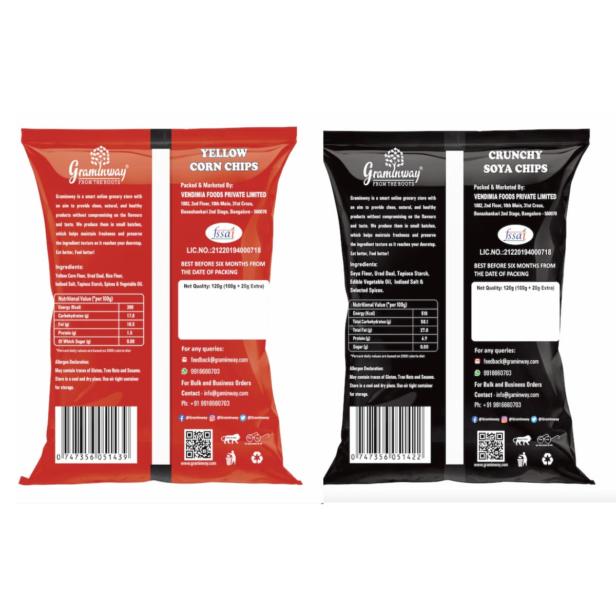 Graminway crunchy soya chips is a crunchy mild flavoured snack. It is an unique blend of taste and health which gets easily digested hence does no harm to the digestive system.