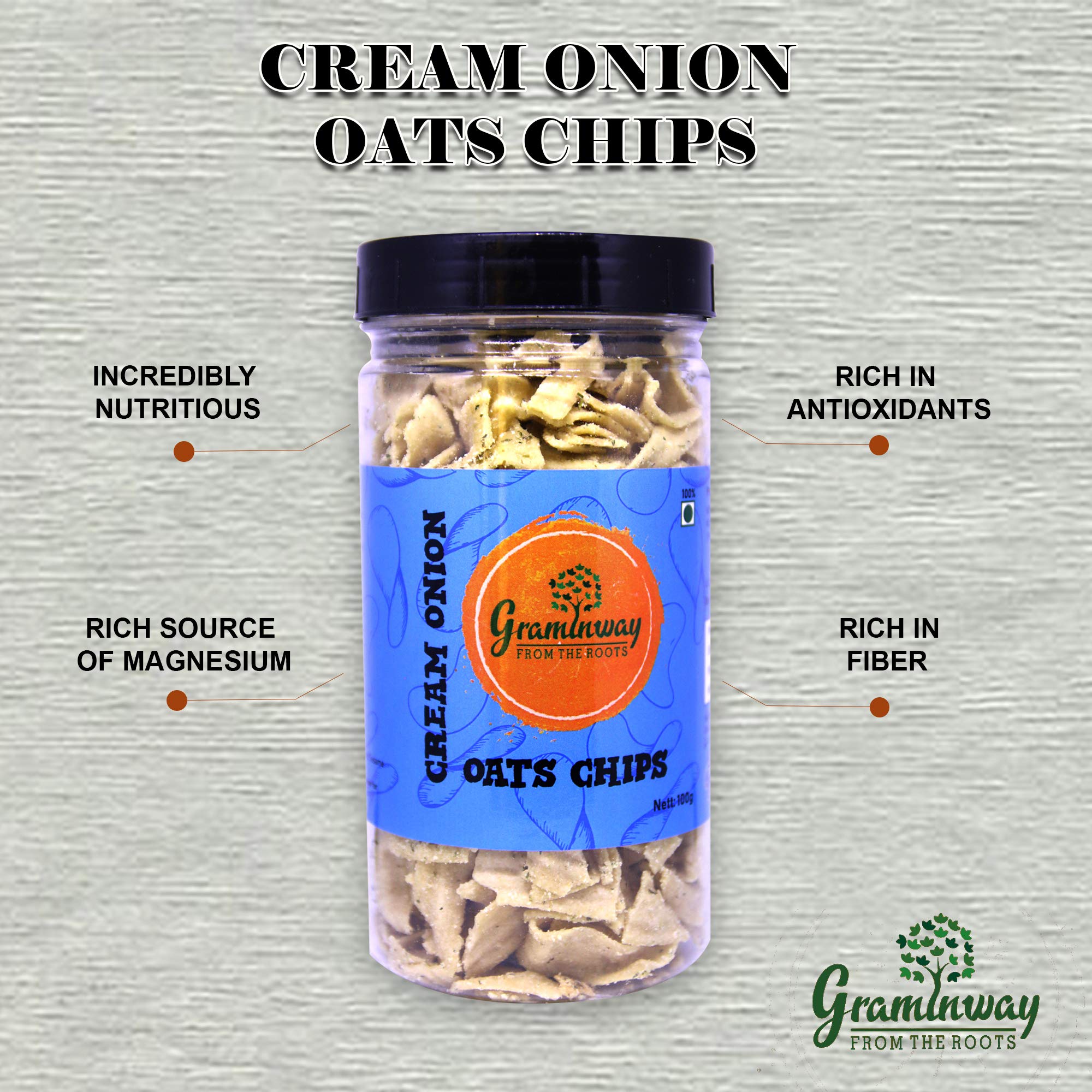 Oats have remained a steady presence in the healthy food landscape. Oats have been culinary companions for people with blood pressure diabetes and other health issues for a long time. Oats help with weight loss is great for your heart and their fiber-rich property improves digestion. Graminway's Oats Chips Cream Onion is made from oats sourced from local farmers who practice sustainable chemical-free agriculture. We bake it with just the right amount of flavoring to get that perfect crispiness and crunchy texture and invigorate your tastebuds. And we even keep it free of preservatives and additives. No need to avoid snacking anymore!