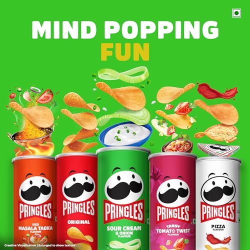 Pringles sour cream and onion flavoured potato chips offer a burst of flavour in every bite with none of the guilt. That is because they have 50 percent fewer calories than regular crisps since they are made with olestra. The pringles potato chips are ideal for snacks or lunch.