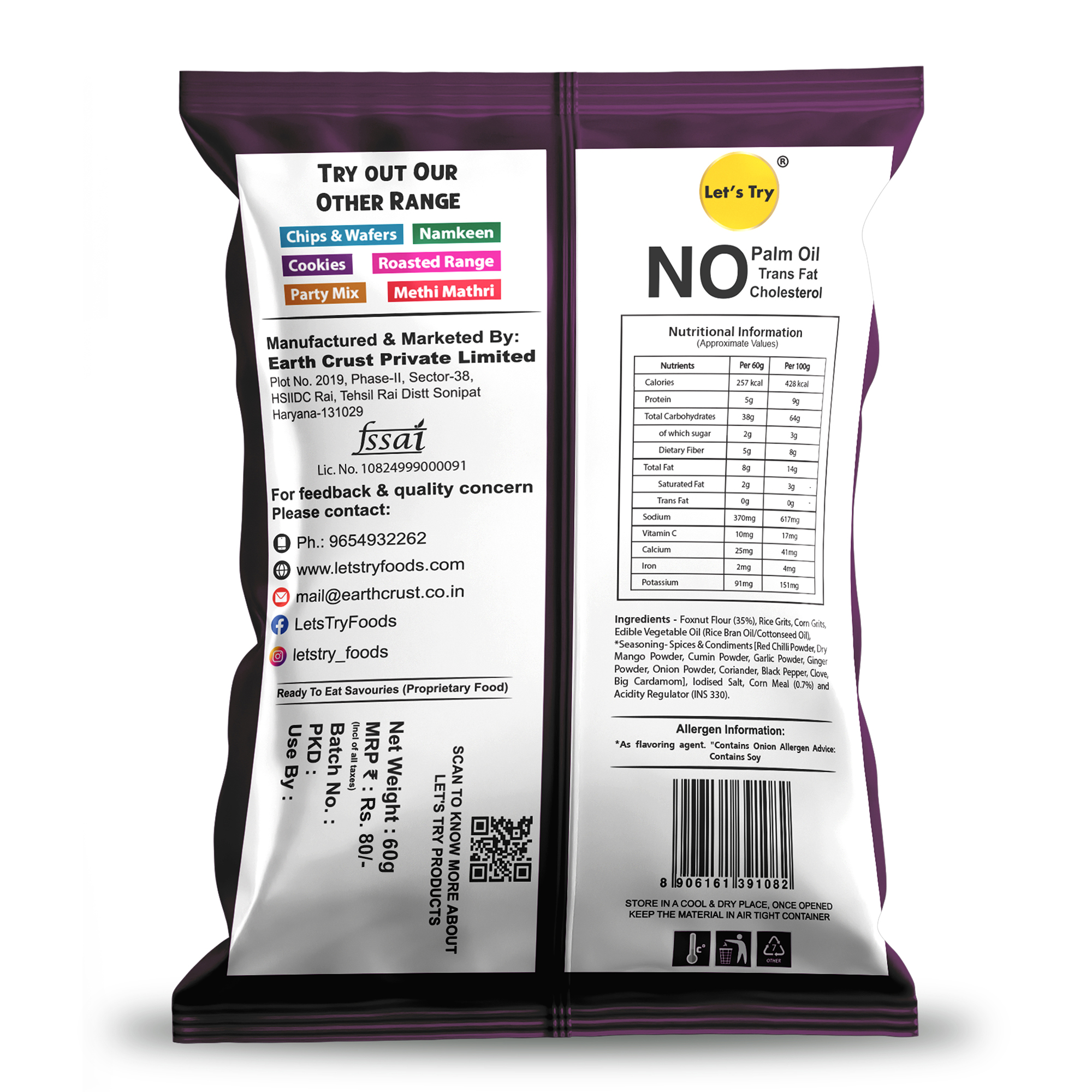 At Lets Try, we believe healthy snacking can be fun too. We follow traditional methods to make all our snacks, just like your grandma used to. We use 100% groundnut oil. No preservatives, No artificial flavors, or colors, no trans fats or cholesterol
