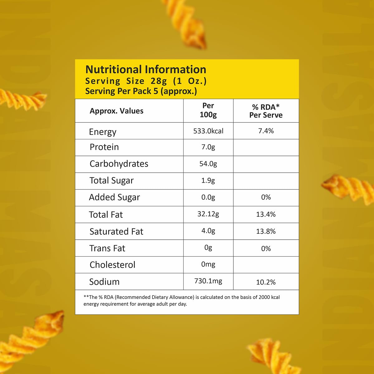 Balanced Snacking Option Enjoy our Corn based Namkeen without worry as it contains zero cholesterol and zero trans fat making it a wholesome choice for your snacking.