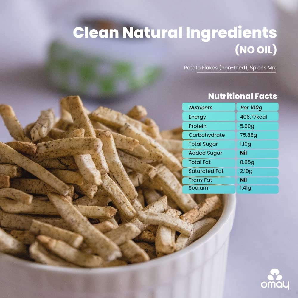 Omay Foods Roasted Potato Flakes (Aloo Laccha) 200g Pouch (Pack of 2) | Healthy Snacks | 100% Oil-Free | Roasted Namkeen snack I Sugar free snack I Travel Snack I Office time Snack I Evening Snack I Late Night Snack