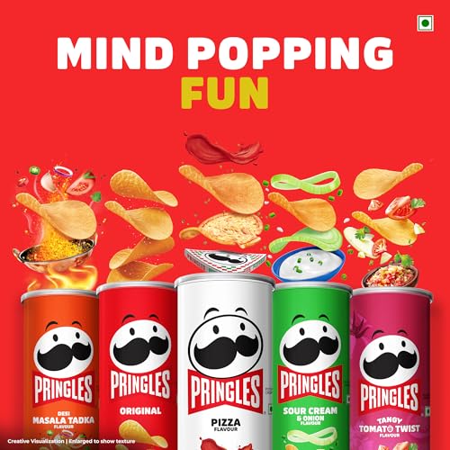6 FLAVOURS - GRAB THEM All- Pringles Potato Crisps come in 6 exciting flavors. Try the extensive range of Pringles Potato Crisps as Sour Cream n Onion Original Desi Masala Peri Peri Fusion Chutney and Pizza. Pick your favorite or grab them all.