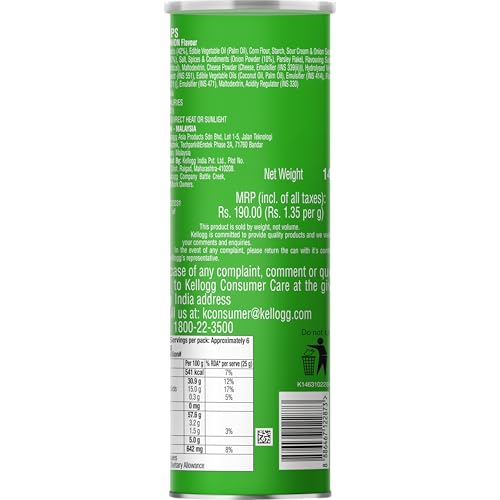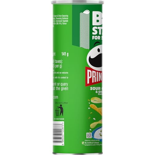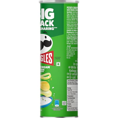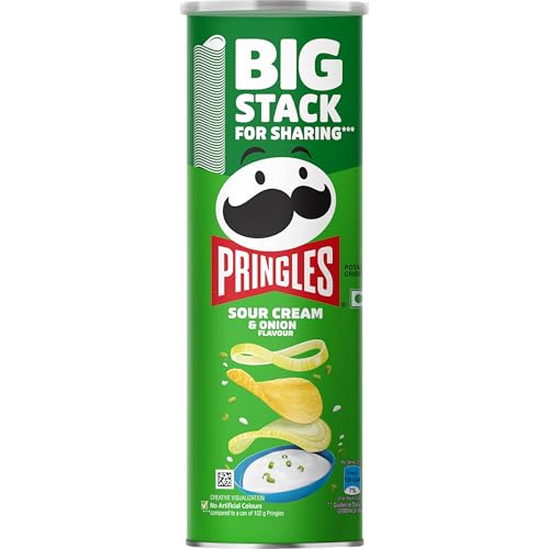 UNIQUELY SHAPED AND PERFECTLY SEASONED - Pringles is known for its unique shape and scrumptious taste. Pringles Sour Cream & Onion flavour potato Chips are seasoned from edge to edge.