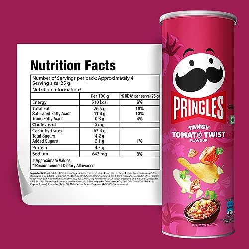 Pringles Tangy Tomato Twist stands out with its key feature of a genuine tomato taste that comes from the infusion of real tomatoes. Each chip delivers a tangy and refreshing flavor that will keep you coming back for more. The unique twist in Pringles Tangy Tomato Twist lies in the delightful blend of sweet and spicy salsa. This combination adds an extra layer of excitement to the classic tomato flavor creating a harmonious balance that tantalizes your taste buds. Pringles Tangy Tomato Twist not only satisfies your craving for bold flavors but also offers a satisfying crunch in every bite. The stackable saddle-shaped chips provide a playful and enjoyable snacking experience making them perfect for sharing or enjoying on your own.