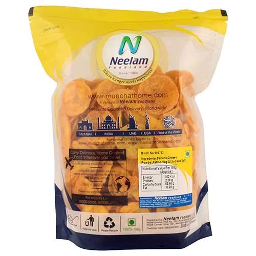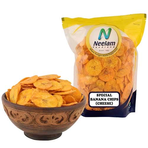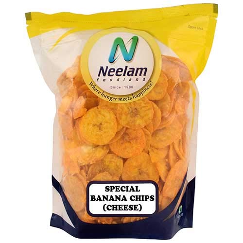 Neelam Foodland Cheese Flavoured Banana Chips made with the best quality ingredients. An ideal appetizing Snack that every age person would love to have at any time. Carry Chips Pouch along with you to enjoy in Breaks Traveling Picnics or Movies. It can be enjoyed plain or with dips Coffees Juice and milkshakes. Tea-time is never complete without dry snacks. Enjoy them at your next party. Spice up your Mood with a variety of snacks from Neelam Foodland.