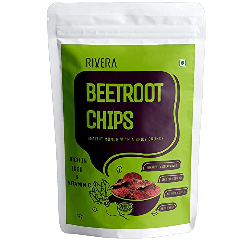 Rivera Crispy Beetroot Chips Rich In Iron Gluten Free Vegan 57G Each (Pack of 3)