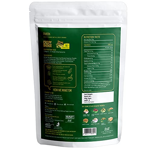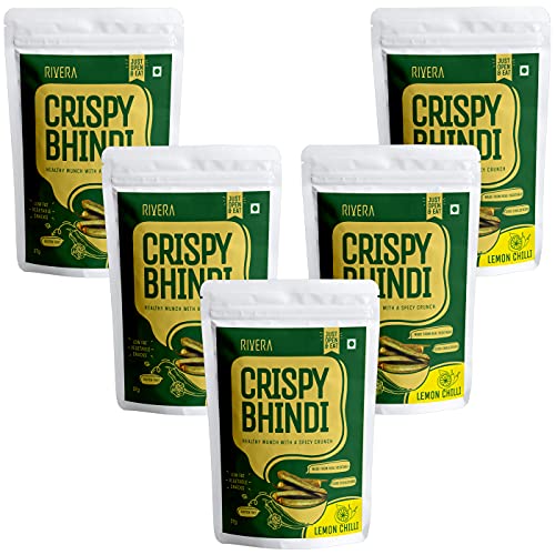 Rivera Crispy Bhindi (Lemon Chili) Okra Chips Vegetable Snacks Vacuum Cooked So No Need To Cook Ready To Eat (50G Each) (Pack of 5)