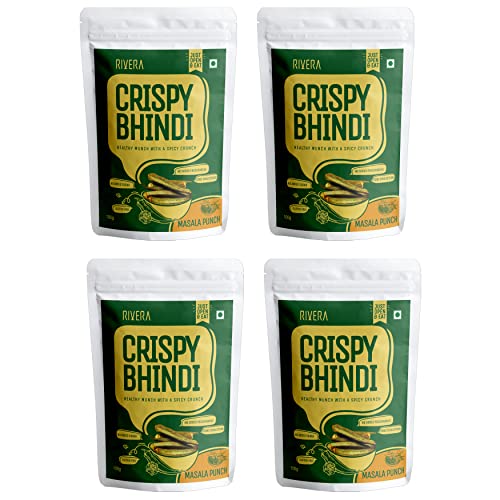 Rivera Crispy Bhindi (Masala)Okra Chips Vegetable Snacks Vacuum Cooked So No Need To Cook Ready To Eat 50G Each (Pack of 4)