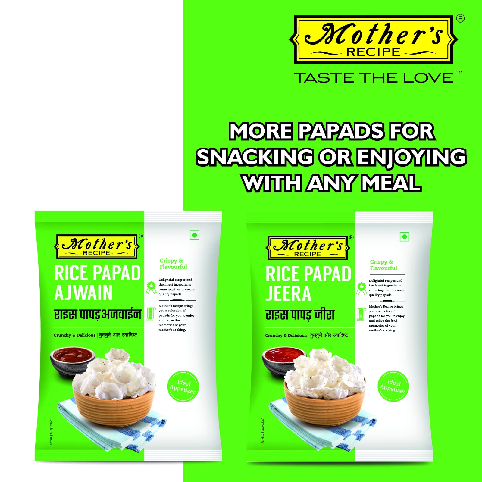 Congratulations on choosing mother's recipe papad. Our papads are unique in many ways - their authentic taste for one. We have achieved this by going through numerous trials to arrive at the perfect taste. This combined with ingredients of the highest quality and modern hygienic process creates a superior papad sure to enhance your meal and snack times.
