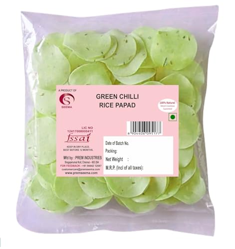 Spicy Green Chilli Flavor: Seema Ready To Fry Rice Papad is seasoned with bold green chilli offering a spicy and tangy flavor perfect for those who love a kick in their snacks.