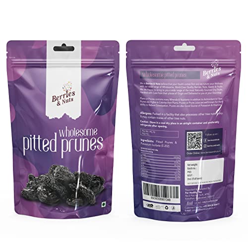 Berries And Nuts Pitted Prunes 600 Grams | Dried Plums, Prune, Antioxidant Rich Super Fruit | 3 Pack of 200Gram