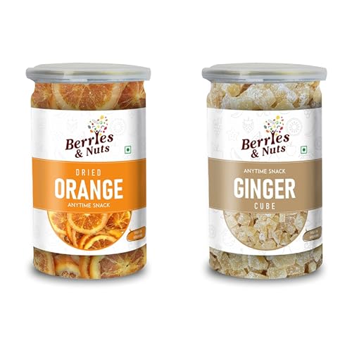 Berries And Nuts Premium Dried Orange Slice & Dried Ginger Cubes Combo | Orange Slice 200 Grams and Ginger Cubes 200 Grams | 400 Grams