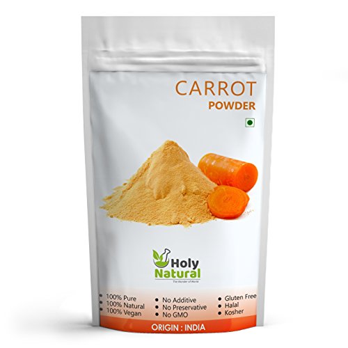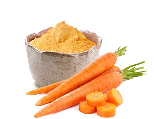 In addition to an abundance of antioxidant beta carotene carrot powder is rich in vitamins A B1 B2 B3 B6 B12 C E and K. The powder also provides several minerals including calcium iron potassium phosphorus and magnesium. The culinary uses of carrot powder are practically unlimited. Carrot Powder has sweet flavour and nutrients of the vegetable in an easy-to-use form. Use it to thicken soups combine it with flour in baking mixes or use as a natural food colouring. It is also added to natural skin care preparations. Direction to use: Carrot cake pudding juice stews soup orange food colouring carrot soup or anything you desire some carrot flavour.
