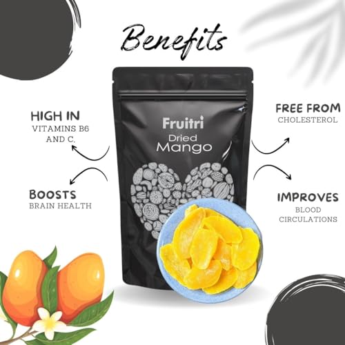 DRIED MANGO BEING A GOOD SOURCE OF B-COMPLEX HELPS BOOST ENERGY AND REDUCE STRESS. The fiber in it improves digestion and overall heart health. Other health benefits offered by these dried fruits include a better skin appearance increased circulation and