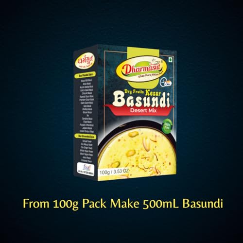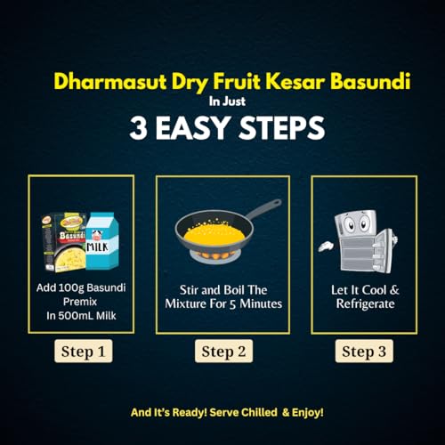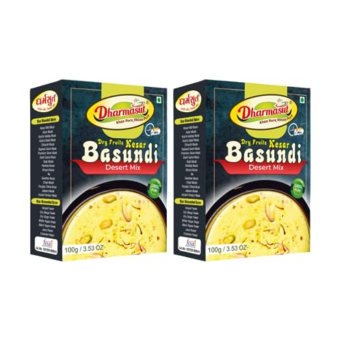 Dharmasut Dry Fruit Kesar Basundi Powder – The Desi Dessert Hack You Can't Miss! Make Instant Basundi in just 5 minutes with 2 steps – Mix 100g Basundi Powder with 500ml Milk Boil and its Ready! For that Chill Vibe Serve Chilled in Summer and Garam in Winter. Dharmasut Kesar Basundi Mix is 100% Natural with Real Dry Fruits Kesar and Sugar – So no extra cheeni needed we have added all the mithaas you need. Weather its Family Gathering Birthday Party or Weddings Basundi Sweet is Perfect for all Occasion. Trust us try it and you will definitely love it!