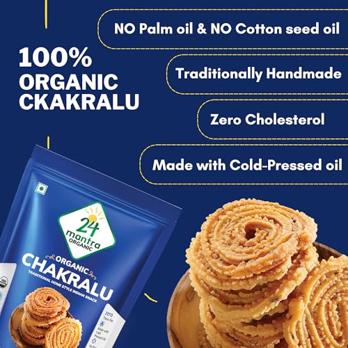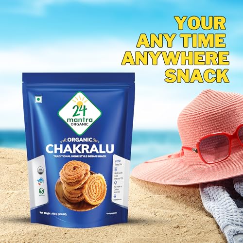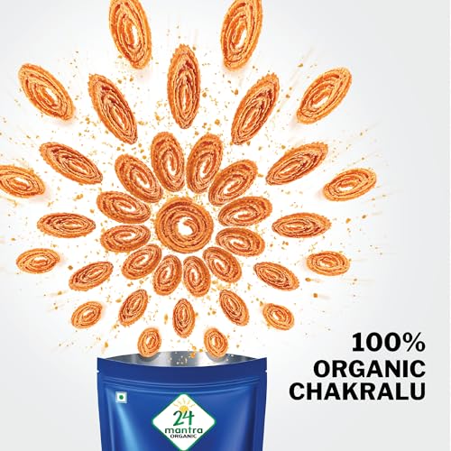 24 Mantra Organic Chakaralu brings the traditional flavors of India to your taste buds making it a must-try snack for lovers of Indian cuisine.