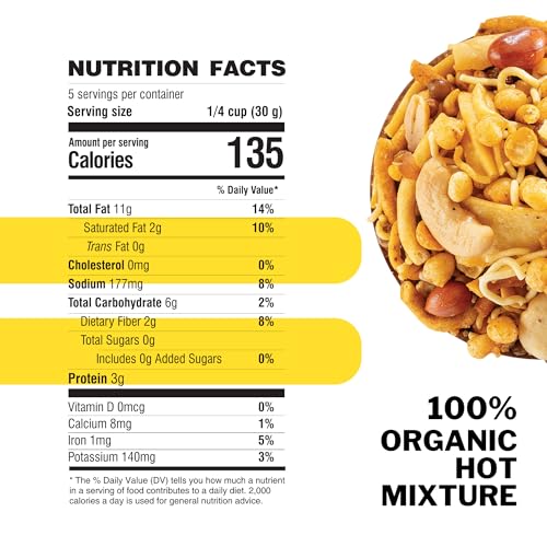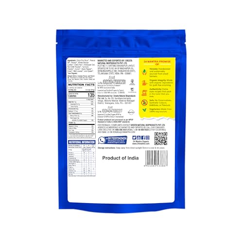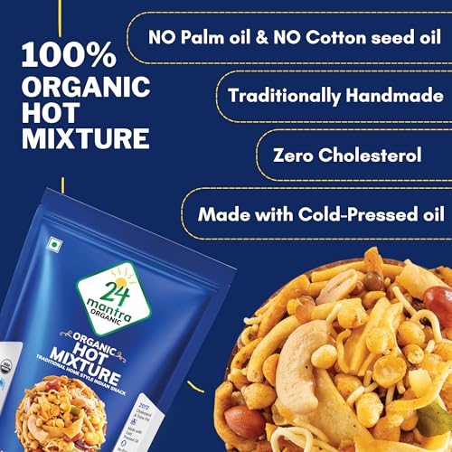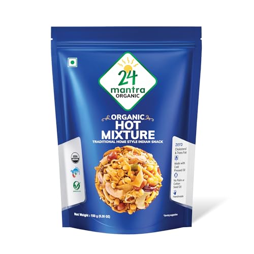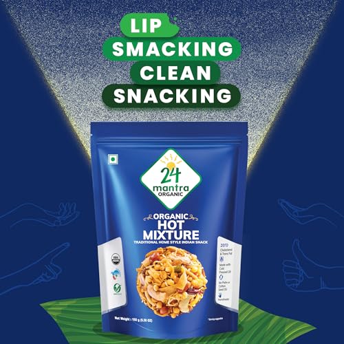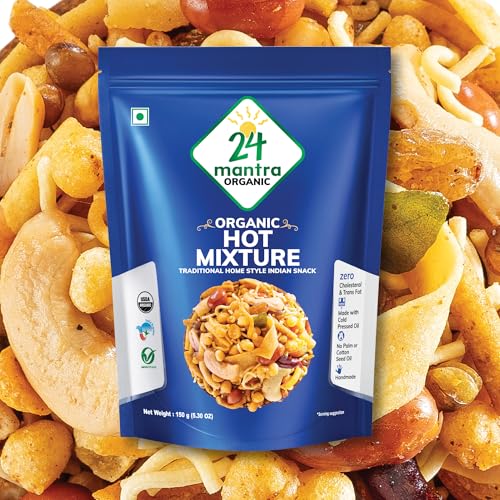 24 Mantra Organic Hot Mixture packs a flavorful punch with a spicy blend of traditional Indian spices making it perfect for those who love spicy snacks.