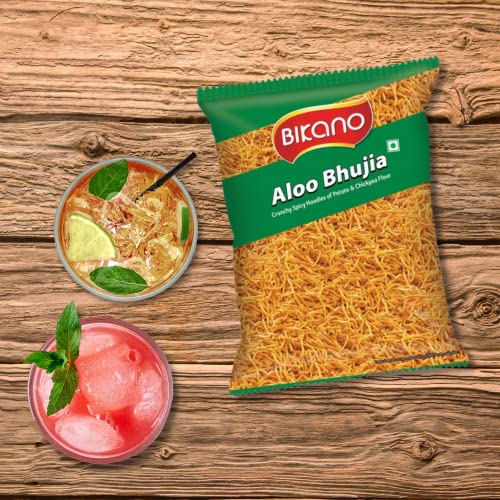 Bikano Aloo Bhujia. Made from high-quality potatoes It s a crisp light spicy short noodle shaped namkeen. With the vast variety of finest packaged products from Bikano one can always ready to celebrate a moment anytime anywhere.