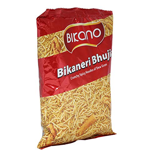 Bikaneri bhujia often simply called bhujia is a popular crispy snack prepared by using moth beans and besan (gram flour) and spices lightyellow in colour. It is a traditional Indian namkeen (or savouries) made up of gram flour and variety of fresh spices. This product is made with finest quality of ingredients. Usually served with tea time or as anytime "snack.