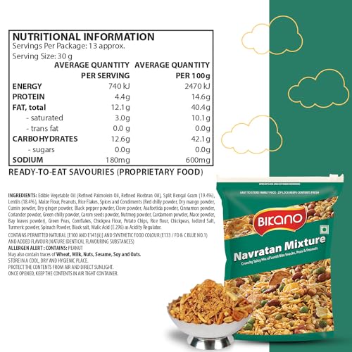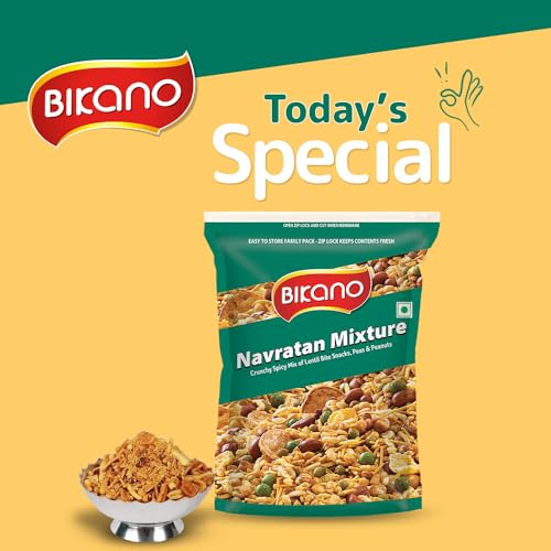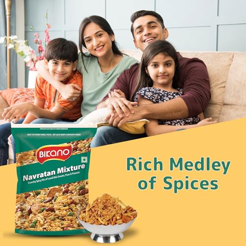 Experience a burst of flavor with Bikano Navratan Mixture! This delectable blend of peas potatoes crispy cornflakes peanuts and pulses offers a perfect mix of spicy and crunchy textures. Ideal for any occasion from parties to cozy nights in this mouth-watering snack will keep you coming back for more with its irresistible taste and aroma.