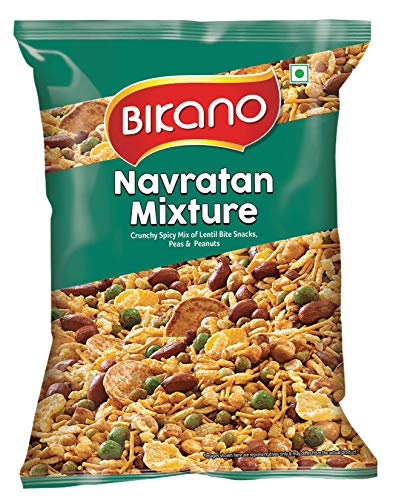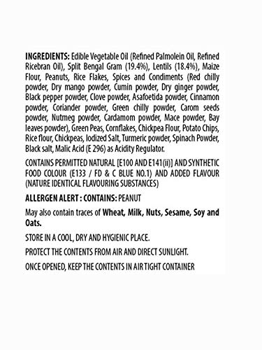 A ready to eat snack which is delicious hot and spicy blend of savoury noodles lentils peanuts rice flakes and sun dried potato chips