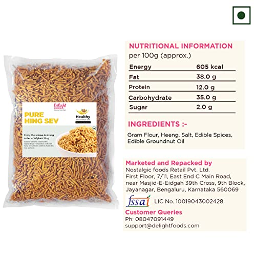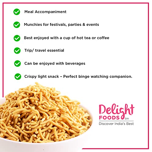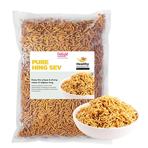Delight Foods Pure Hing Sev 750g Healthy Groundnut Oil Fried Namkeen Indian Snacks No Preservatives