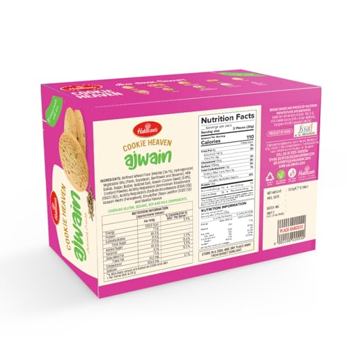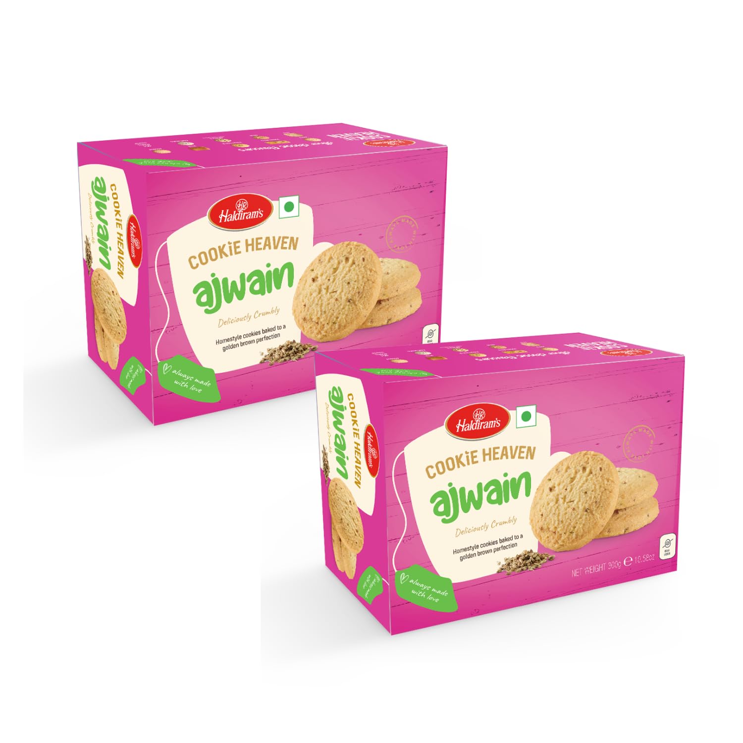 Haldiram's Ajwain Cookies are delightful and aromatic treats that showcase the distinctive flavor of ajwain seeds. Ajwain also known as carom seeds is a popular spice in Indian cooking renowned for its unique taste and digestive properties. These cookies are crafted with a buttery and crumbly dough that serves as the perfect canvas for the rich ajwain flavor. The ajwain seeds are carefully incorporated into the dough releasing their warm and peppery notes with every bite. Perfect for teatime or as a snack on their own Haldiram's Ajwain Cookies provide a unique twist to traditional cookies. Their distinctive flavor profile makes them a favorite choice for those who appreciate the robust and aromatic taste of ajwain.
