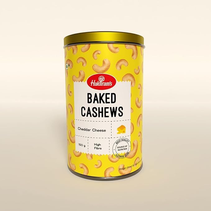 Haldiram's Baked Cashew 150g | Crunchy Cashew Nuts with Cheddar Cheese | Flavored Roasted Cashews | Whole Crunchy Cashew | Premium Kaju Nuts | Nutritious & Delicious | Healthy Dry Fruits