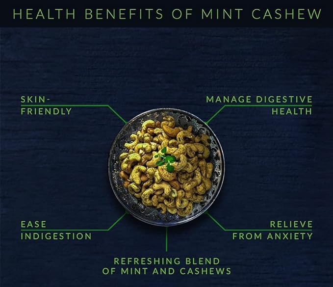 Haldiram's Premium Pudina Cashews Freshly ground Mint Leaves and rock salt. These are the best nuts you can ever find. They are delightfully rich and tasty a nutritious treat that will make a great snack time.