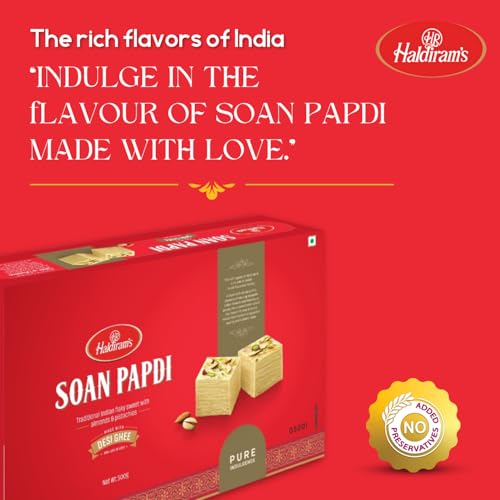 HomeGrocerySnacksNamkeenHaldiram's Soan Papdi 500g | Traditional Indian Sweet | Finest Ingredients | Crunchy Almonds & Pistachios | Indian Mithai | Festive Delight | Great Gift Pack for Festival | Mithai for Raksha Bandhan