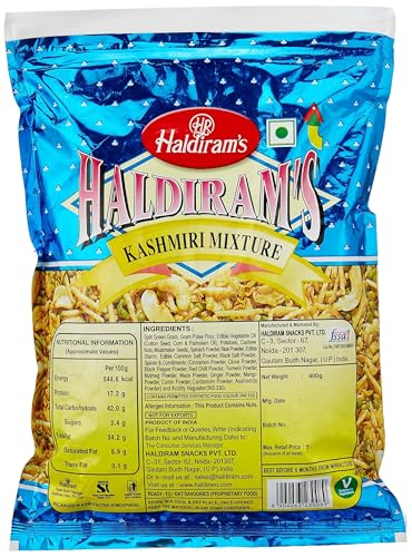 Tastes Brilliant - Haldiram Kashmiri Mixture unique and delicious namkeen tastes salty and savoury. It has green gram potato chips cashew nuts and other snack ingredients on every spoon to make you happy.