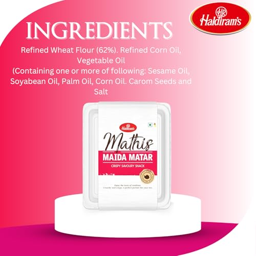 Haldiram's Maida Matar fried in Edible Vegetable oil. Haldiram's Masala Mathi fried in Edible Vegetable oil.