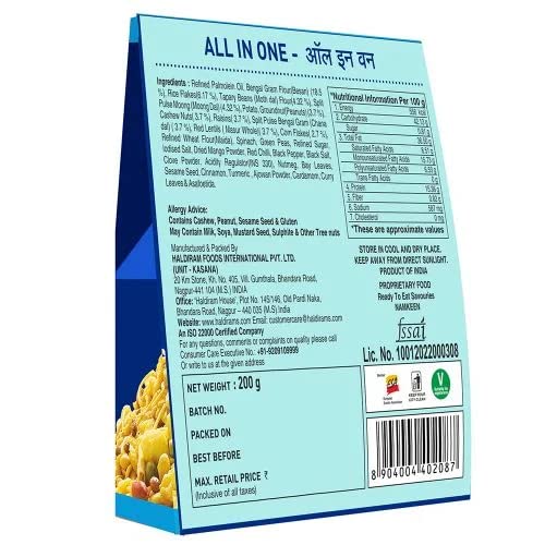 All In One by Haldiram gives everyone a wholesome and filling food experience by tasting the blend of all spicy salted and sweet namkeens altogether in one form. Cornflakes nuts raisinsand namkeens come together to make your snack time extra delicious with Haldiram Nagpur.