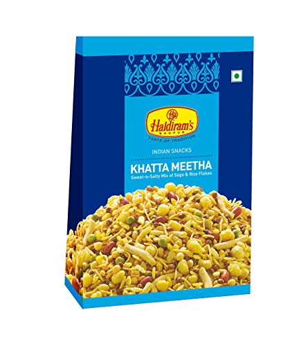 Khatta Meetha is a Haldiram's original snack mixture made from a flavoursome blend of salty and sweet savoury ingredients like sev fried green peas and boondi. Snack on this light mixture to satisfy those predinner hunger cravings that strike you at tea time.