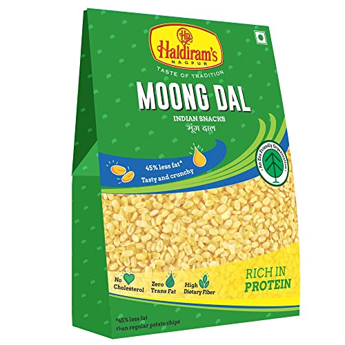 Split moong beans coated in a delectable selection of spices. An all-time favourite offering from Haldiram's you don't need a special time or occasion to snack on these!