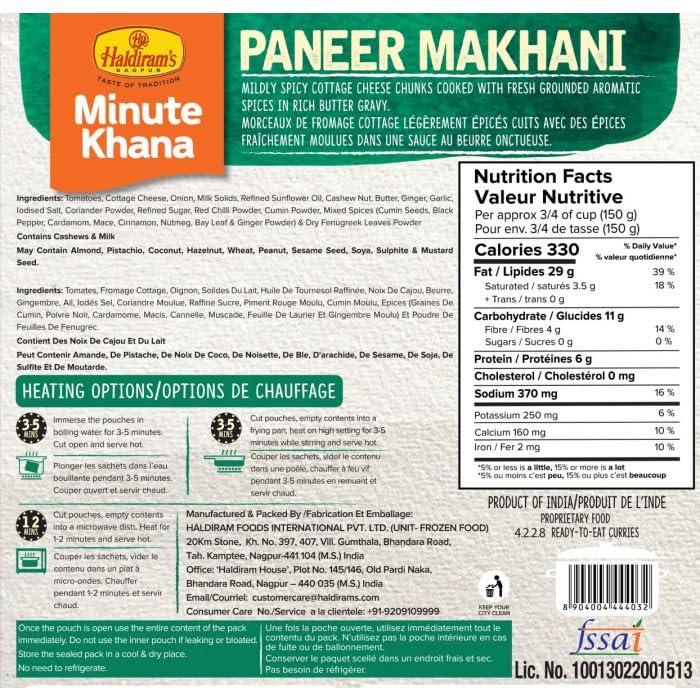 Ready To Eat Paneer Makhani 300g (Pack of 4) Combo. Delight in the rich and creamy flavors of Haldiram's Nagpur Ready To Eat Paneer Makhani with this convenient pack of four. Each 300g serving features succulent paneer cubes simmered in a luscious tomato and butter gravy infused with a blend of aromatic spices for a truly authentic taste. Perfect for a quick and satisfying meal just heat and serve to enjoy this restaurantquality dish at home. Whether for a family dinner or an easy lunch this combo pack ensures you always have a delicious and hasslefree meal ready to go. Indulge in the gourmet taste of Paneer Makhani crafted with the expertise of Haldiram's a name synonymous with quality and tradition.