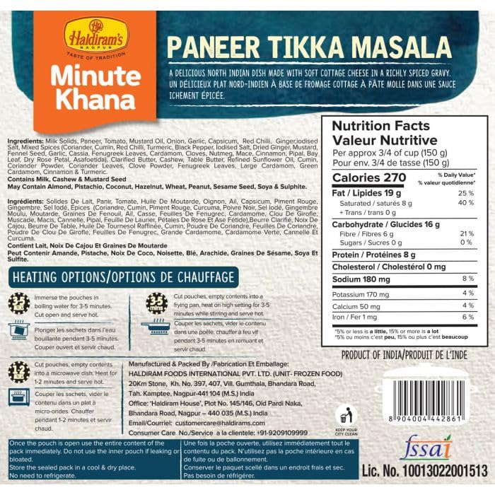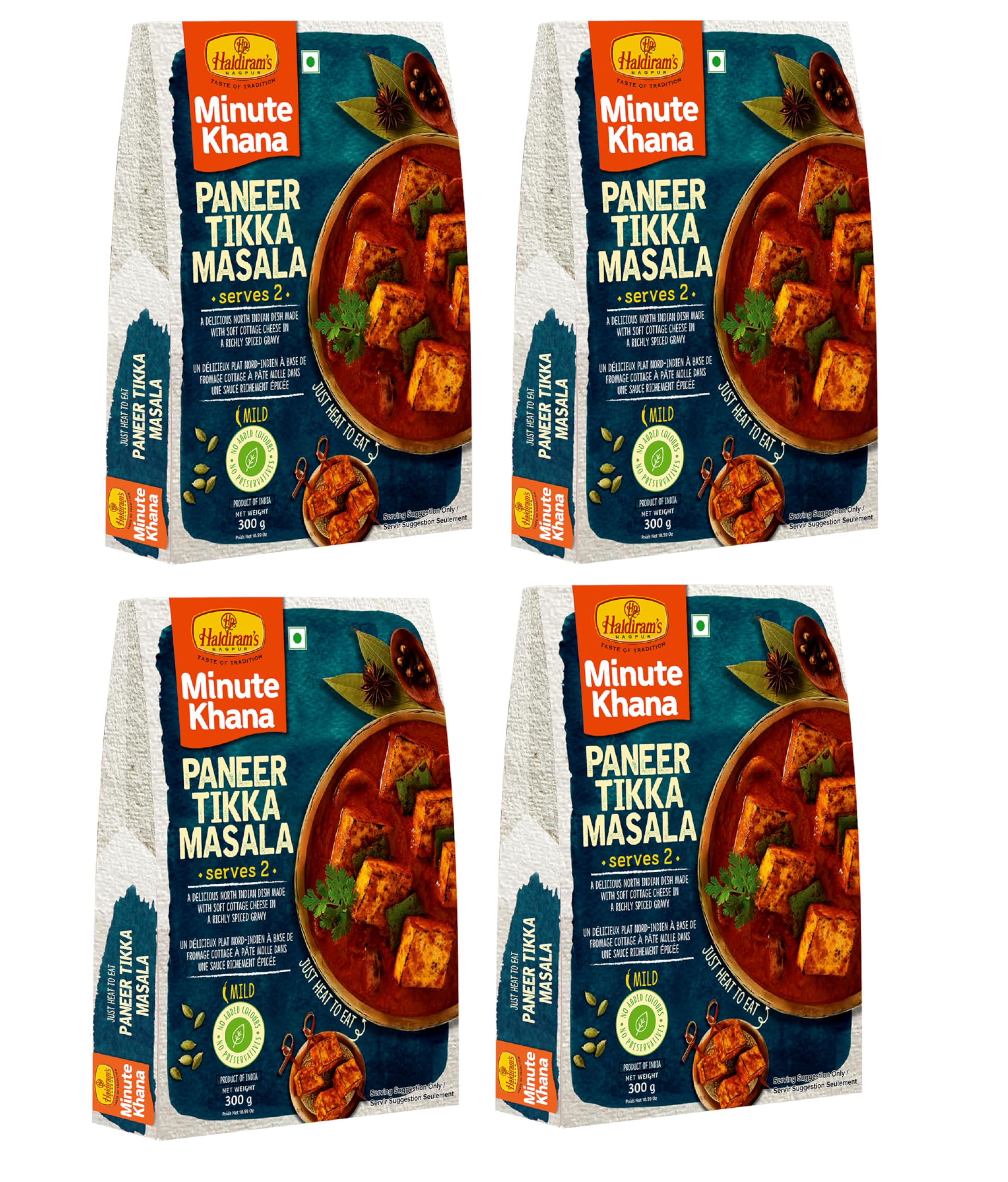 Haldiram's Nagpur Ready To Eat Paneer Tikka Masala 300g (Pack of 4) Combo Experience the tantalizing flavors of Haldiram's Nagpur Ready To Eat Paneer Tikka Masala with this convenient pack of four. Each 300g serving features succulent paneer cubes marinated in a creamy tomatobased gravy infused with aromatic spices delivering an authentic taste of Indian cuisine. Perfect for those craving a spicy and indulgent meal this dish offers a delightful balance of flavors and textures. Whether for a quick lunch or a cozy dinner simply heat and serve to enjoy the gourmet taste of Paneer Tikka Masala in the comfort of your home. With this combo pack you'll always have a delicious and hasslefree meal option on hand. Trust Haldiram's to bring you the finest quality and authentic flavors making every dining experience memorable.