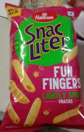 HaldiramSnaclite fun fingers have a shape that closely resembles penne shaped pasta. The otherwise white colored chips are coated in redyellow masala. The Haldiramsnac lite fun fingers have a very oldschool nostalgia attached to it. You will be constantly reminded of the airy masala puffs. These fun fingers are not over coated in masalas. It is lightly spiced extremely crunchy and airy. There is nothing taste wise that stands out but the snack is tasty overall.