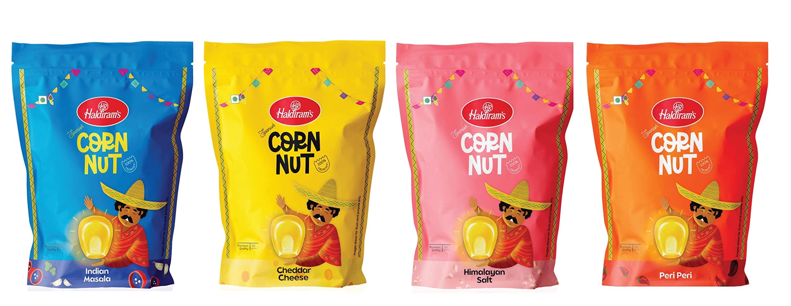 Haldiram's Spanish Baked Corn Pack of 4 X 110g | Masala Corn | Corn Nuts with Cheddar Cheese | Roasted Corn Nuts | Irresistible Flavor | Corn with Himalayan Salt | Nutritious Snacking | Party Mix Snacks