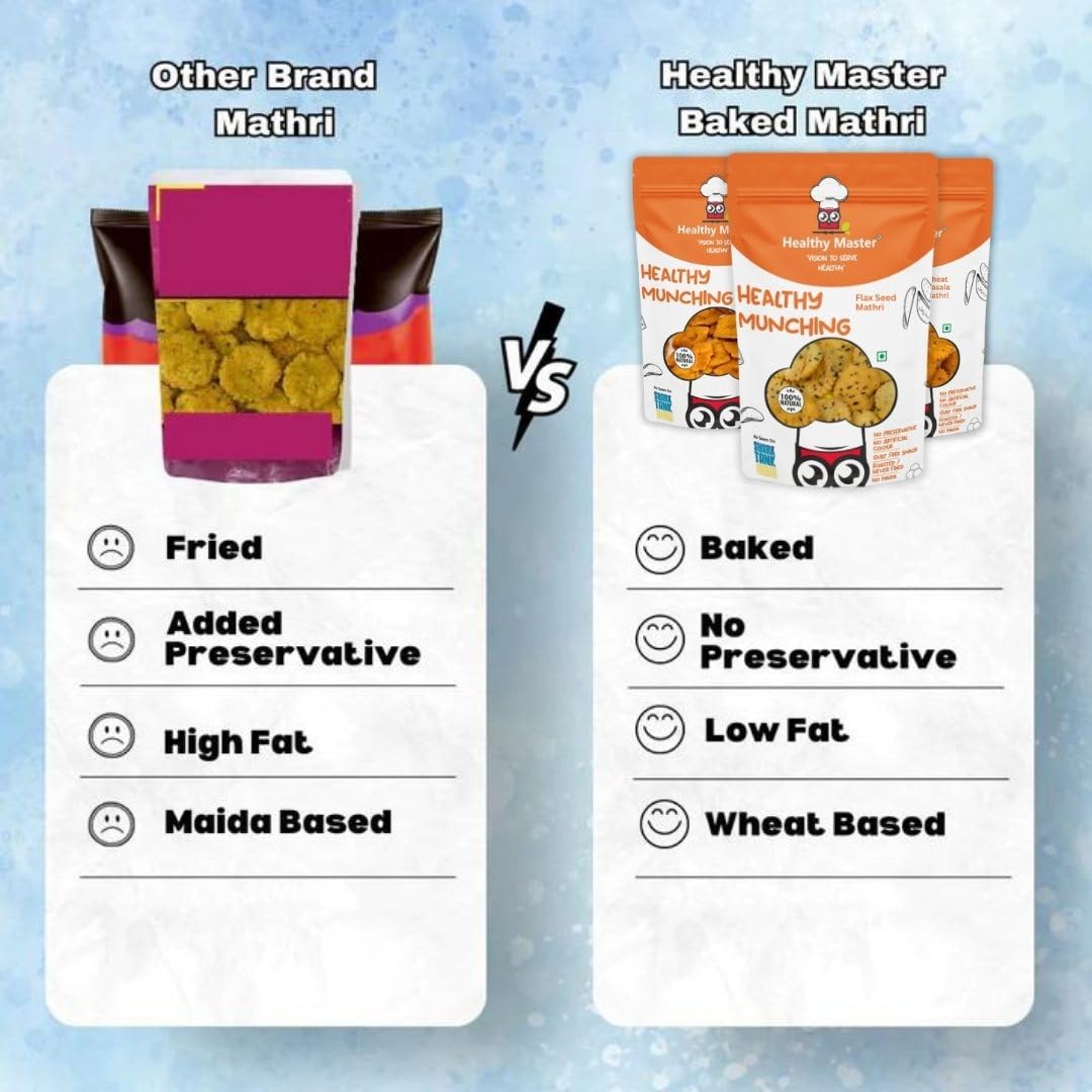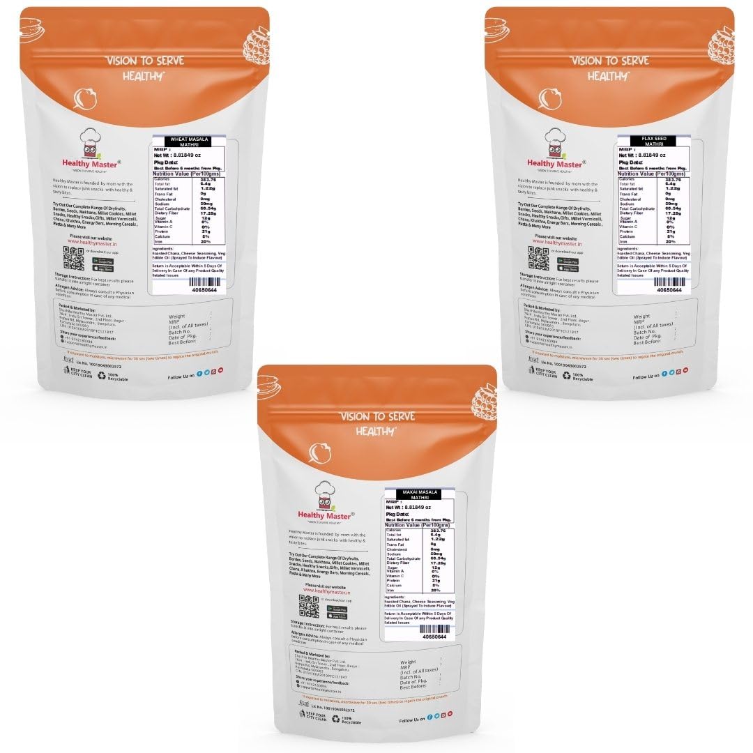 HomeGrocerySnacksNamkeenHealthy Master Mathri Combo (Flaxseed Makai Masala Wheat Masala - 250g) 750g | Rich in protein | healthy lifestyle | Rich in vitamins