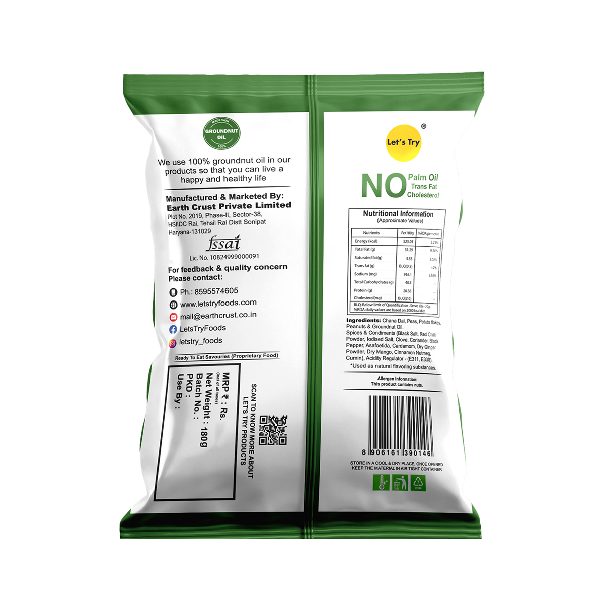 At Lets Try, we believe healthy snacking can be fun too. We follow traditional methods to make all our snacks, just like your grandma used to. We use 100% groundnut oil. No preservatives, No artificial flavors, or colors, no trans fats or cholesterol