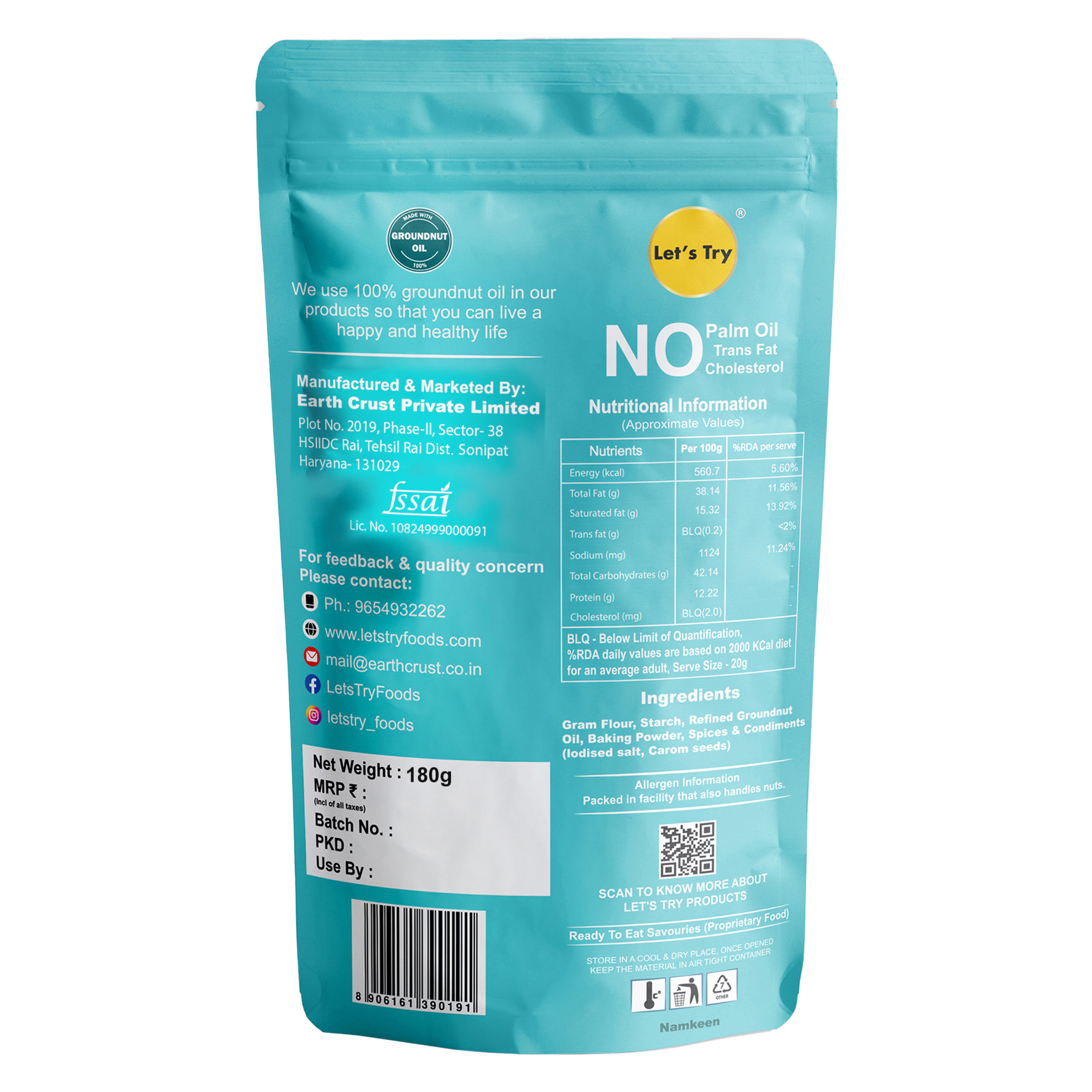 At Lets Try, we believe healthy snacking can be fun too. We follow traditional methods to make all our snacks, just like your grandma used to. We use 100% groundnut oil. No preservatives, No artificial flavors, or colors, no trans fats or cholesterol