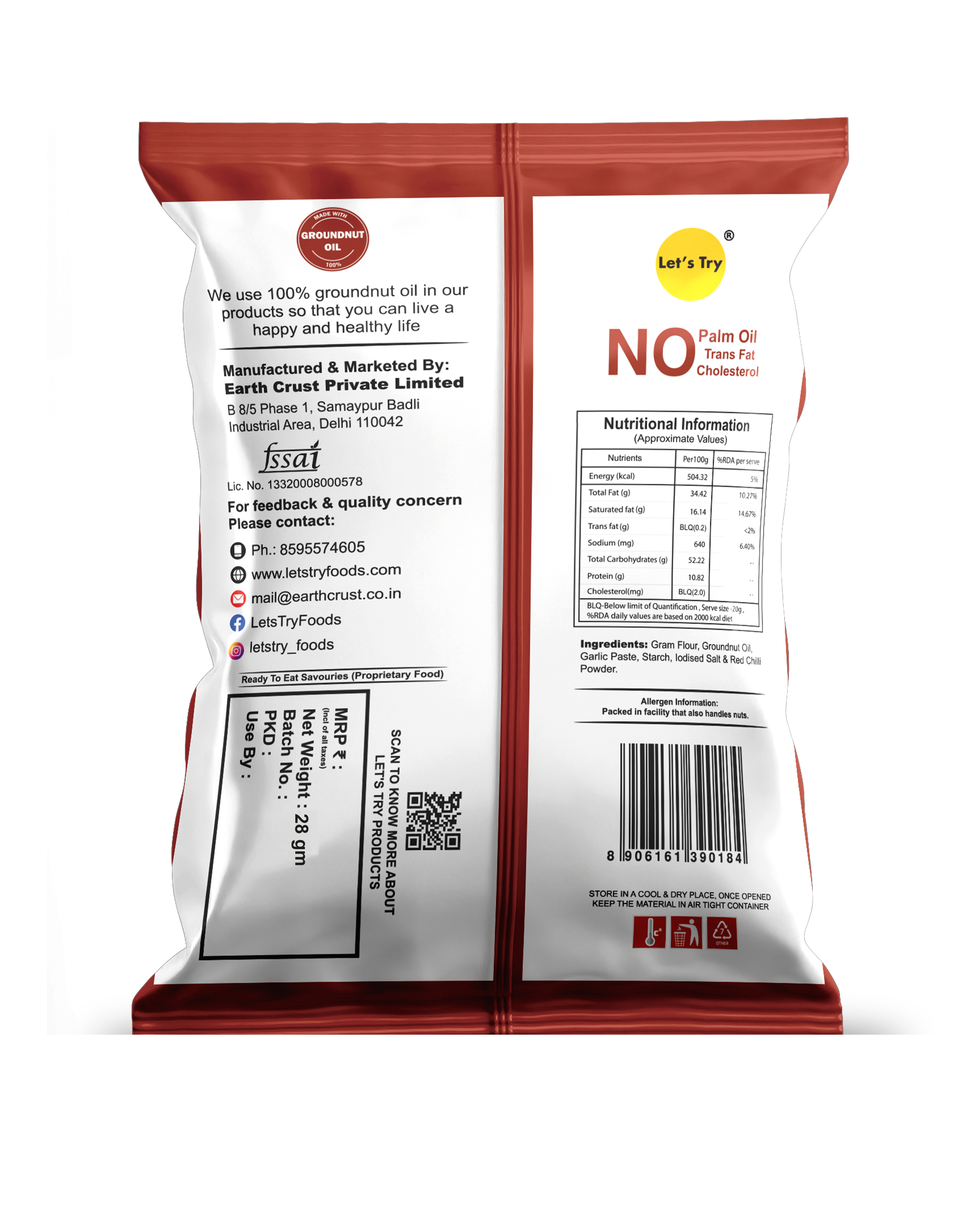 At Lets Try, we believe healthy snacking can be fun too. We follow traditional methods to make all our snacks, just like your grandma used to. We use 100% groundnut oil. No preservatives, No artificial flavors, or colors, no trans fats or cholesterol