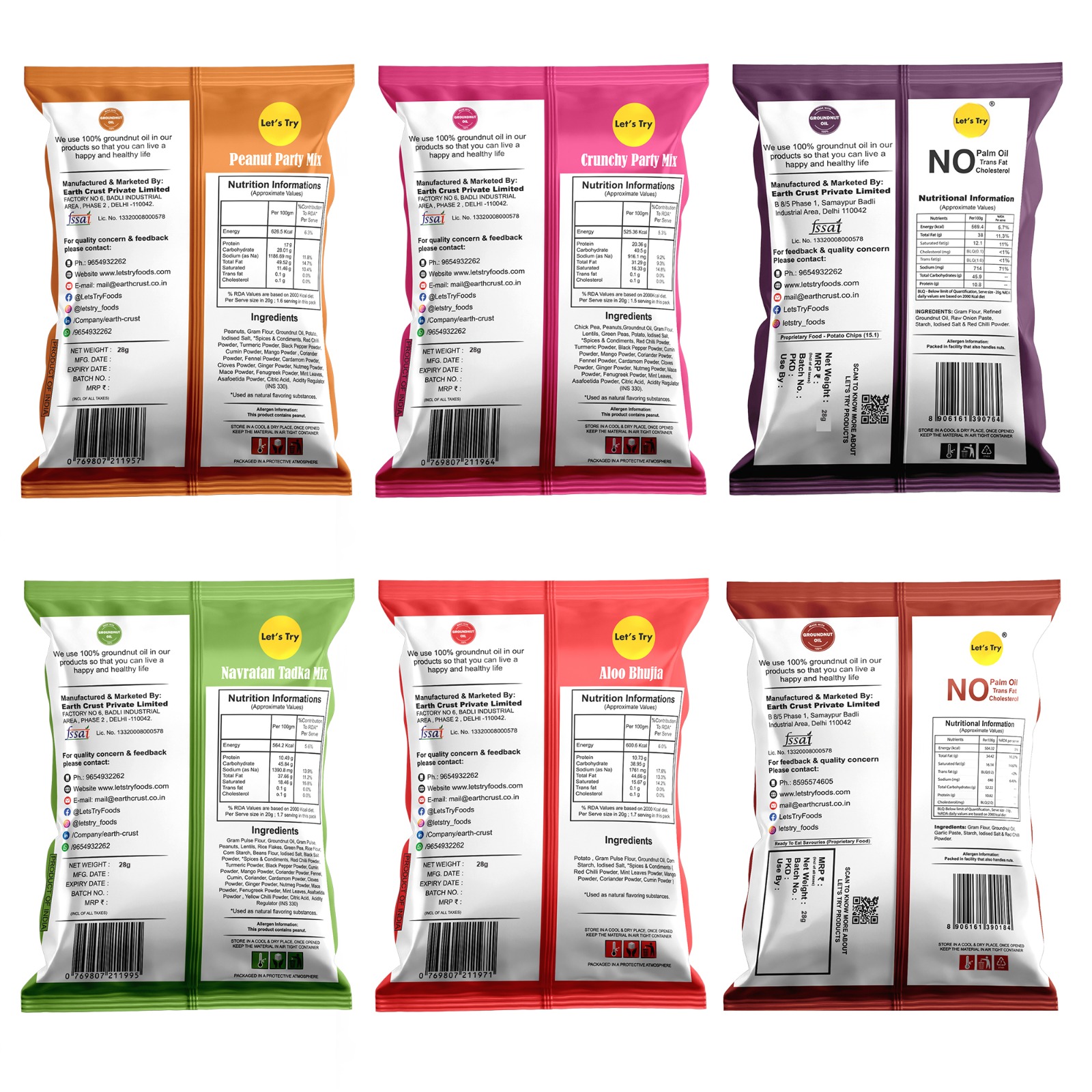 At Lets Try, we believe healthy snacking can be fun too. We follow traditional methods to make all our snacks, just like your grandma used to. We use 100% groundnut oil. No preservatives, No artificial flavors, or colors, no trans fats or cholesterol