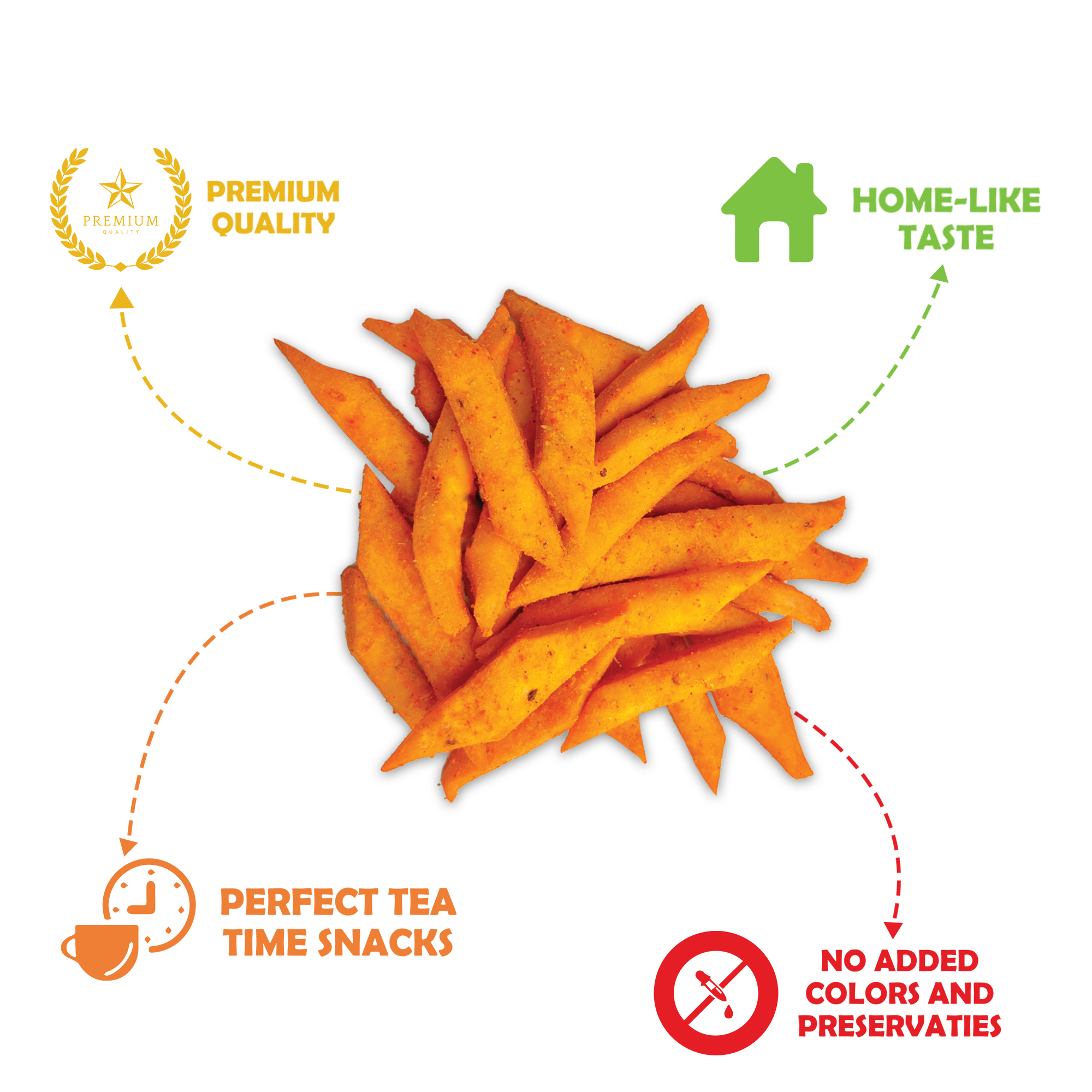 At Lets Try, we believe healthy snacking can be fun too. We follow traditional methods to make all our snacks, just like your grandma used to. We use 100% groundnut oil. No preservatives, No artificial flavors, or colors, no trans fats or cholesterol