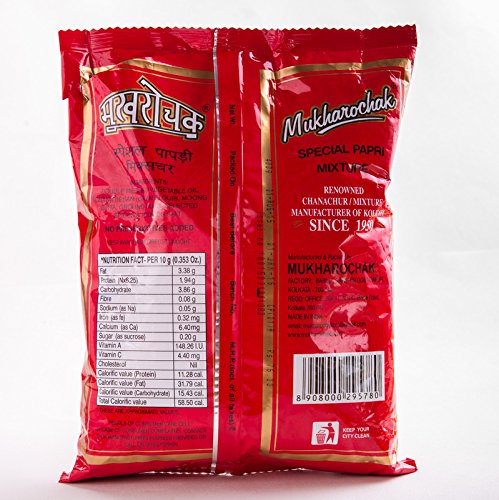 The most favorite snack of Bengal Mukharochak brings to you the unique and legendary special papri chanachur. Made of the finest quality besan fried in fresh and double-refined vegetable oil tossed with peanuts and moong and blended with selective spices it gives you a royal taste. A zero percent cholesterol product without any artificial colors flavors or preservatives.