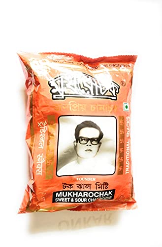 Mukharochak presents Bengal's most favorite snack - chanachur in a sweet and sour flavor. The name says it all. You have got to try it to believe in its electrifying taste. This crispy delight is a perfect combination of various tastes. It's a bit sweet a bit sour and a bit hot and spicy-all the tastes perfectly blended to give it a mystical flavor of its own. A zero percent cholesterol product without any artificial colors flavors or preservatives.