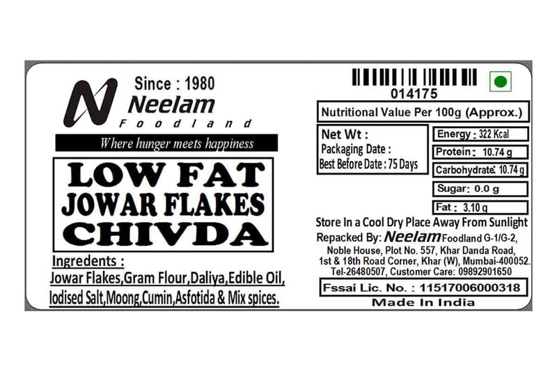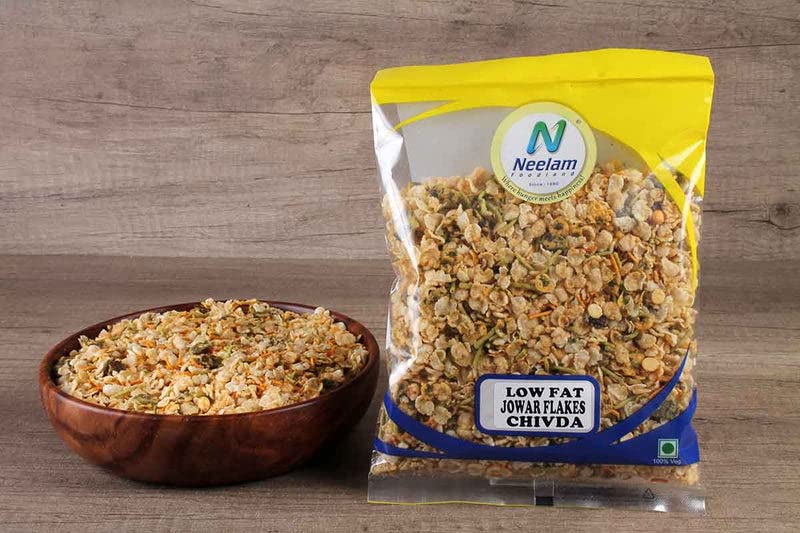 Neelam Foodland Crispy and Delicious Low Fat Jowar Flakes Chivda: A perfect snack that can be enjoyed anytime anywhere A healthier and calorie-consious alternative to deep-fried snacks. It can be enjoyed plain or Garnish it with various dressings for an added taste. One can also take along a snack box filled with Chivda to school or office for easy snacking. It will be a good combination with juice or milk shakes. Tea-time is never complete without dry snacks. Enjoy them in your next party.