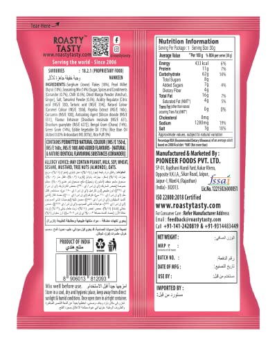 Absolutely love this roasted namkeen by Roasty Tasty! Its super crunchy and genuinely tasty as the name goes.Best part is that it is 32% millets which is indeed a rarity!Taste hai,